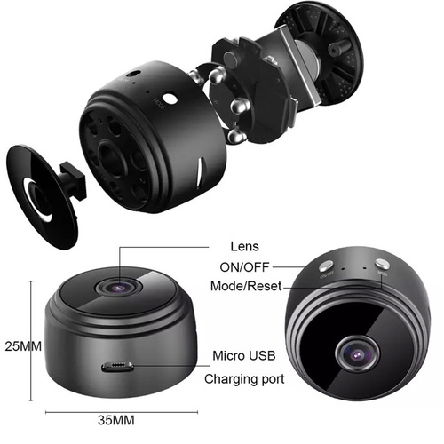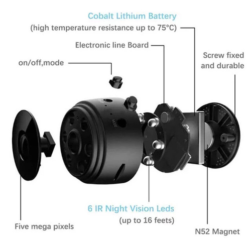 به لطف فناوری دید در شب، می تواند تصویر واقعیت فول اچ دی پنج مگا پیکسل را در زمان واقعی در طول روز یا شب تشخیص دهد و آن را مستقیماً به تلفن هوشمند منتقل کند. می توانید از WiFi فقط 2.4 گیگاهرتز Wi-Fi یا بدون WiFi استفاده کنید. اگر وای فای پشتیبانی نمی شود، لطفاً کارت micro SD را وارد کرده و برق را روشن کنید، دوربین فایل ویدیویی را ضبط کرده و آن را روی کارت میکرو SD ذخیره می کند. صفحه فلزی آهنربایی، به شما این امکان را می دهد که دوربین را در هر مکانی بدون پیچ متصل کنید. دوربین وای فای از 6 نور مادون قرمز مخفی F5 با عدم روشنایی و فاصله دید در شب 5M استفاده می کند. تنظیمات هشدار را روشن کنید، پس از تشخیص حرکت، یک اعلان فشار همراه با تصاویر به تلفن شما ارسال می کند. می تواند حدود 60 دقیقه کار کند، همچنین می توانید دوربین را برای ضبط 24 ساعت به شارژر USB وصل کنید. فقط یک کارت Micro SD را در این دوربین مخفی کوچک قرار دهید، آن را روشن کنید و دوربین WiFi مینی میتواند ویدیوی HD را به طور خودکار در کارت Micro SD بدون Wi-Fi ضبط کند. حتی اگر شبکه آفلاین باشد نیز می تواند فیلم ضبط کند. با یک آهنربای قوی داخلی، این دوربین مینی را می توان به شدت روی سطح آهنی دلخواه جذب کرد. با استفاده از پایه مغناطیسی اضافی، می توانید دوربین را در هر مکانی نصب کنید و دوربین را در هر جهتی به صورت دستی تنظیم کنید.